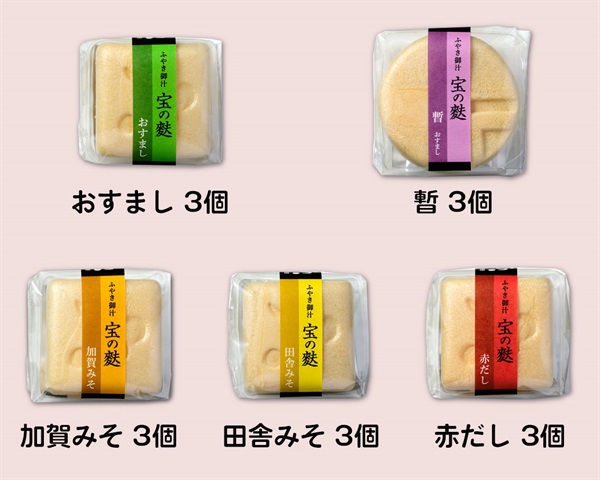 おすまし・暫・加賀みそ・田舎みそ・赤だし・コンソメスープ×各3