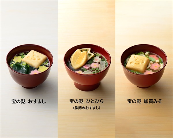 桜花の香りがふわりと漂う春のおすまし「ひとひら」と、定番の宝の麩3種類を詰め合わせました。
